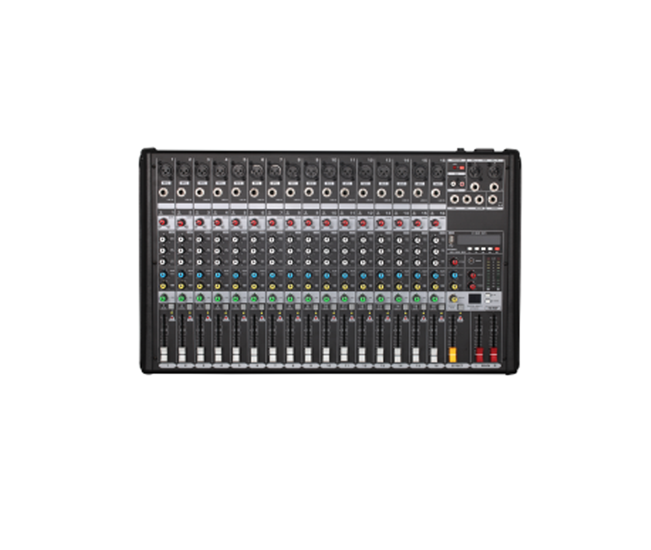Ø每通道带3段均衡调节,MUTE静音开关,60MM平滑推子衰减器;